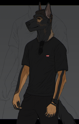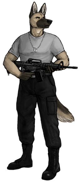 Found this pretty old drawing in my art folder and decided to finish and share it.Arthur "Rex" O'Sullivan - my old character. Half-dingo half-GSD ex-SAS soldier. Drops f-bombs way too often.