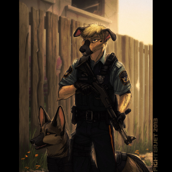 In particular I really like the robot hand, it's very well detailed and is an interesting feature that definitely helps this character stand out a bit. I notice from your description that you mention this is an older piece, I noticed that on some of your older art that you kinda have a bit thicker of a muzzle shape on canine characters, it's either that or it's something specific to your GSD characters, I'm not sure yet.