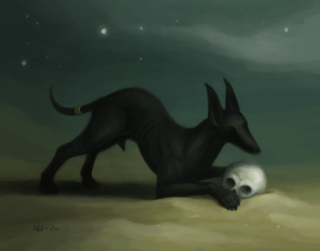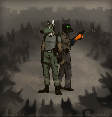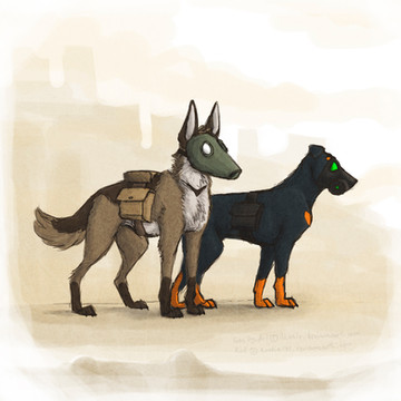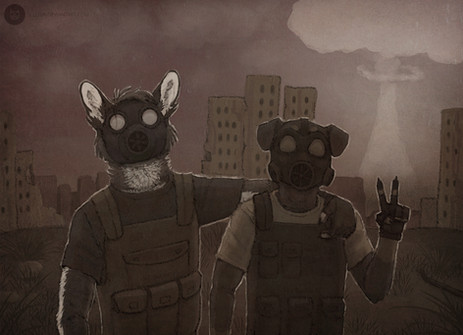 Интересная работа. Не собака-типа-как-человек-в-противогазе-на-фоне-постядерного-мира, а именно собака в постядерке.