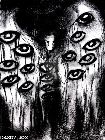 Wow, that's cool. The black and white gives it a creepier effect, so does the sketchy look. It definitelyΒ is a nightmare situation for me, as I hate being stared at by so many eyes. It looks great, good job.