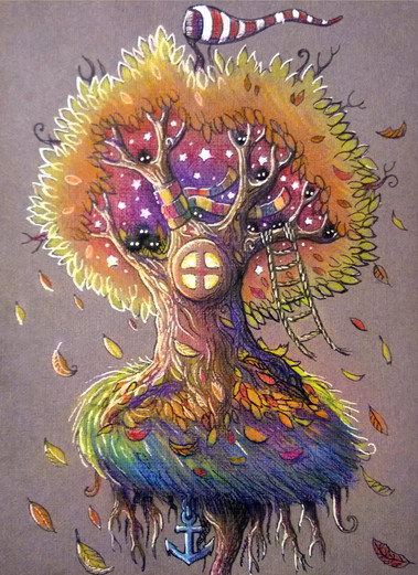 I finally decided to make a color version of my old Tree House sketch.So it's all about august and falling stars in foliage, and reading good books in a cosy place with the cup of tea, or hot chocolate, or whatever ^___^