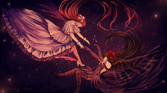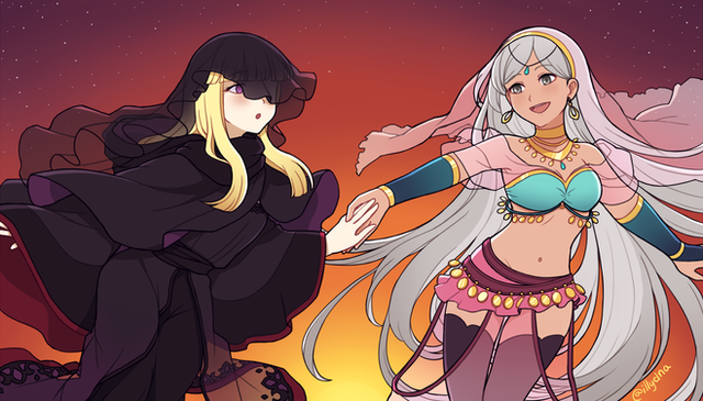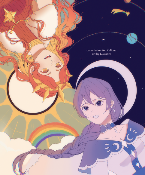 Two of my OCs, Alina and Vega .Fun fact, they actually don't know each other at all. I just realized they have interesting parallels not only in design :')