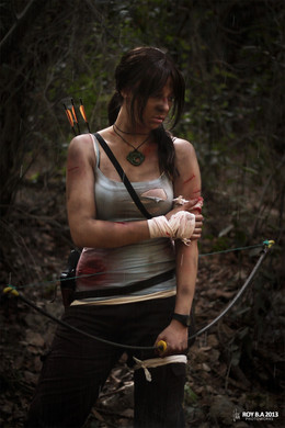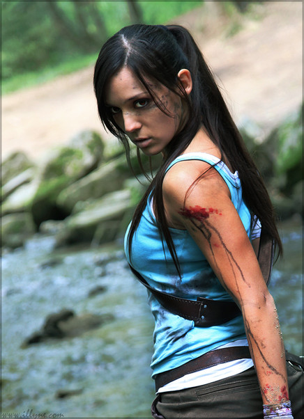 lara croft is all wound should look like a pain and not doing charm.