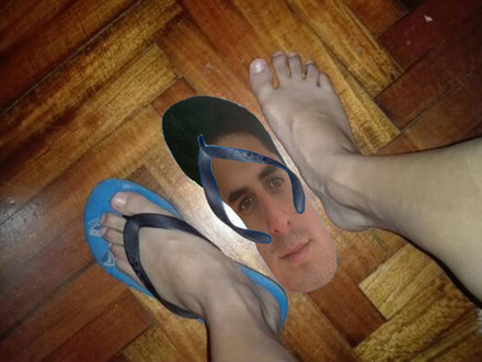 He's going to love being squished under my big feet all day long! Hahaha!