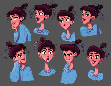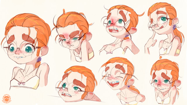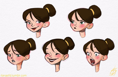 Great practice sheet. The expressions are well rendered and immediately indentifiable, wich is the main purpose of this kind of exercice i guess. The lines are dynamic. The color study is great too and give an idea of the final rendering for the other poses. The girl have personality even if the style is pretty common in cartoons. If this work is for a disney movie then the style seems perfect.