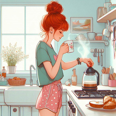 #digitalart #cartoon #dog #digitalpainting #coffee #digitalartist #digitalartwork #pet #watercolorpainting #womanbeautiful #womanfemale #kitchenscene #artworkdigital