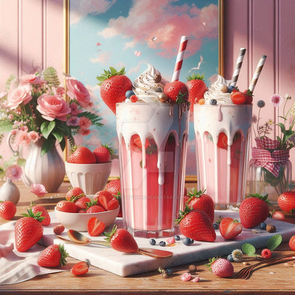 #digitalart #wallpaper #cherries #digitalartist #digitalartwork #fruits #glasses #milkshakes #stilllife #strawberries #artworkdigital