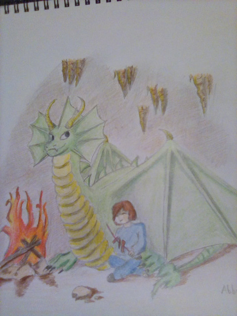 I saw the movies first - but it took me three years to get around to seeing the first one. The trailer and the TV commercials for the first movie did not excite me. I loved the first movie when I finally saw it and I liked the second one. In mid-December of last year I decided to try reading the first book. By the first week of February i had ripped through all twelve books. While the first two movies are number 1 and 3 on my favorite movie list (Coco is #2), I rank the book series as far superior to the movies. Book Fishlegs and Horrorcow (not the dragon in this drawing - since ilwin does not want to name this dragon) are far more entertaining characters than movie Fishlegs and Meatlug.