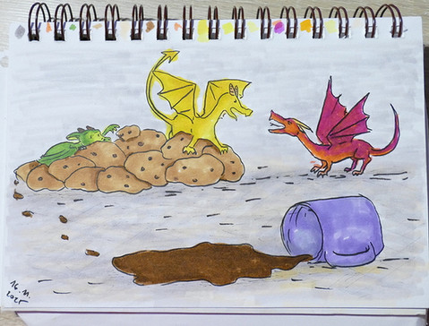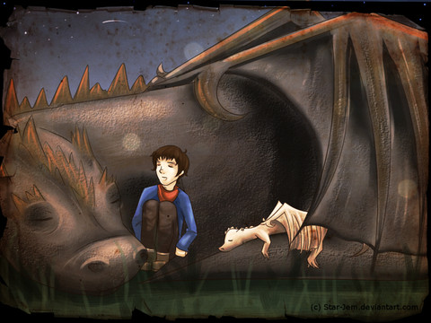 The hot weather we got here lately reminded me of fifth book of the series and of this scene (and few others actually (I mean besides the one with lava that I still don’t have enough courage to try to make it happen yet)) I wanted to draw so I here is Toothless totally desperate from very noisy humans outside in the middle of the night. And Toothless is so very me in this scene. Except he doesn’t mind heat but I do very much…