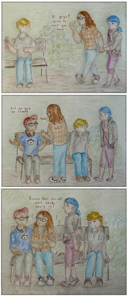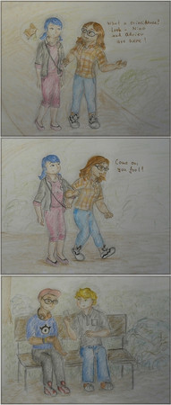 It's getting more and more intriguing! Great job. I especially like their poses, they look natural and express emotions well.