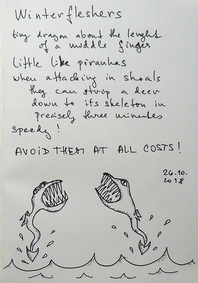 (Windwalker doesn’t have individual descriptive page neither in books themselves nor in “Incomplete Book of Dragons” but I’ve thought it would be right to include him (since it’s Hiccup’s riding dragon) and just in the “inktober bunch” (because I will go on with making the pages after it as well, just not daily) so I made it up according to the mentions in the Incomplete Book of Dragons and the chart at the end of the book. I’m happy how the drawing turned out though. Also because this one is not made as much as according to some particular illustration from the book as most of the other drawings were )
