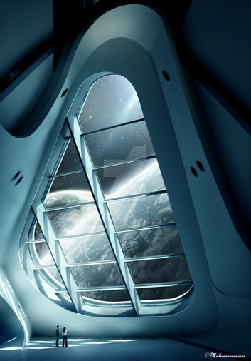 Cold colors are a great idea for create this style of galactic atmosphere, the depth of field is very nice ... maybe the angle of the upstair looks little bit weird ! (i don't draw, it's just an impression not a critique !)