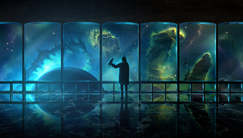 Quite pretty.Β The station in general feels empty, but it brings a feeling of foreboding, especially as the man stands by himself, staring out through the window to the planet.Β What is he thinking?Β Is he contemplating on what he has done, or is he thinking about where the ship is going, or maybe about that planet.