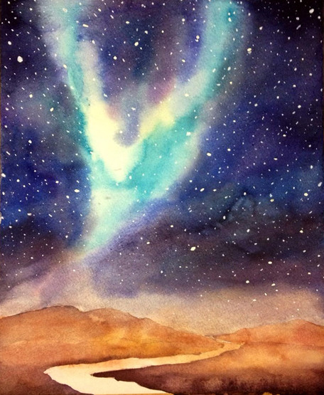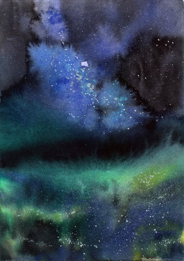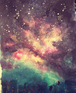#girl #loneliness #parallel #portal #search #shine #space #stars #transition #universe #wa #watercolor #withdrawal #world #white_gouache #traditionalart
