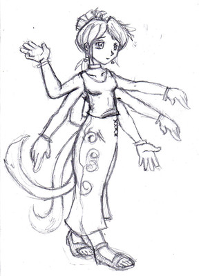 Occupation: Generally cleaning somewhere or other; her monkey-hand-feet and tail allow her to get places. In her spare time she creates doo-dads 'n things from the city's junk. If someone's interested, she'll sell it, but more than likely it'll become part of her growing collection of 'useless fun stuff'.