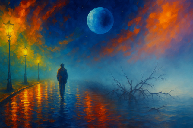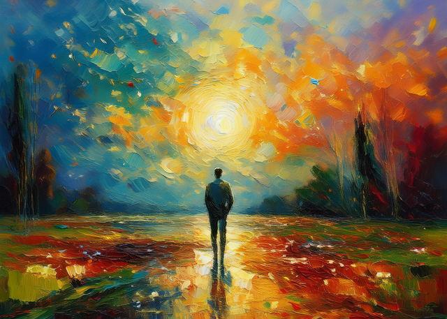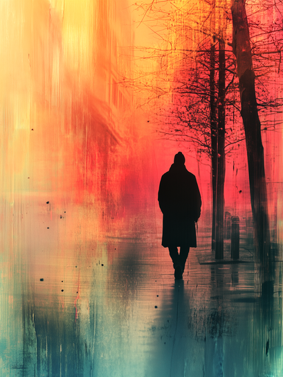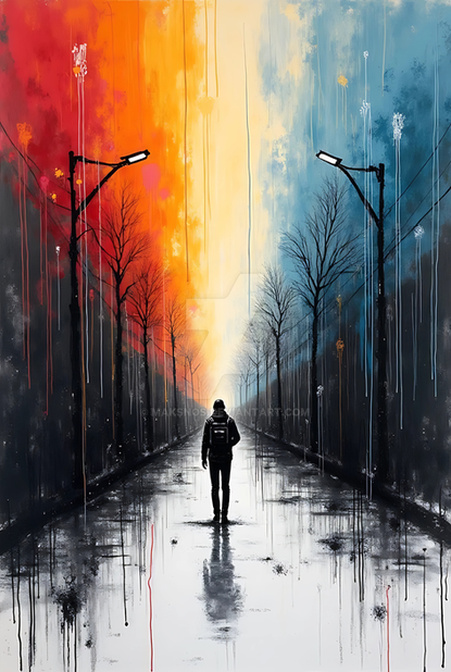 #digitalart #fantasyart #digitalpainting #wallpaper #surreal #abstract #reflection #wallart #ai #autumn #colorful #fall #man #rain #silhouette #weather #aipainting #midjourney #synthography