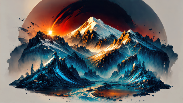 #digitalart #ai #clouds #landscape #mountains #solareclipse #wallart #wallpaper #watercolor #watercolorai #aipainting #midjourney #synthography