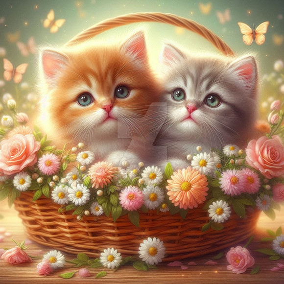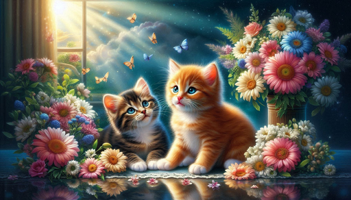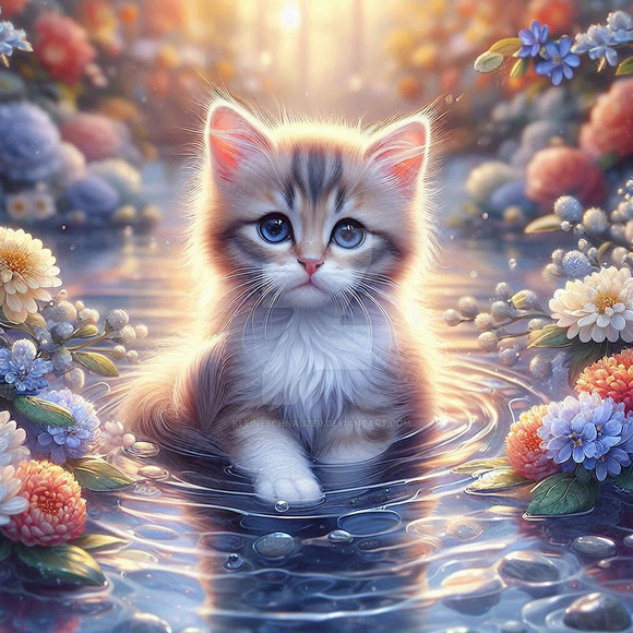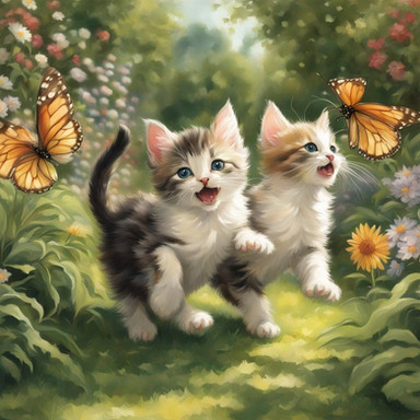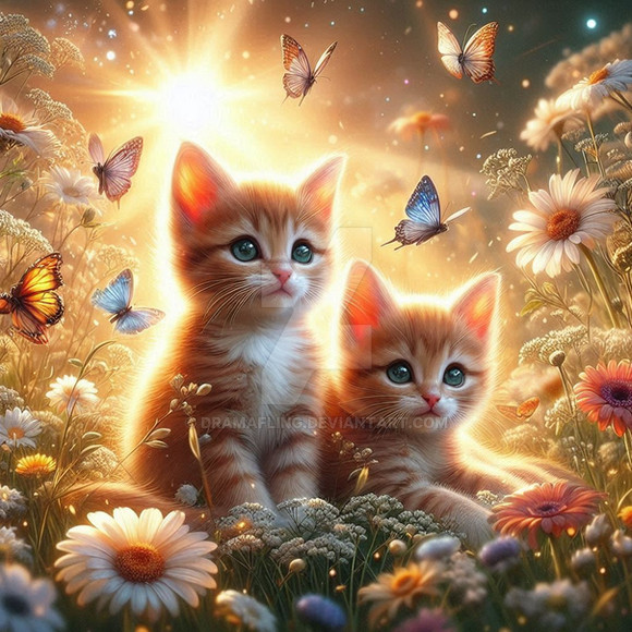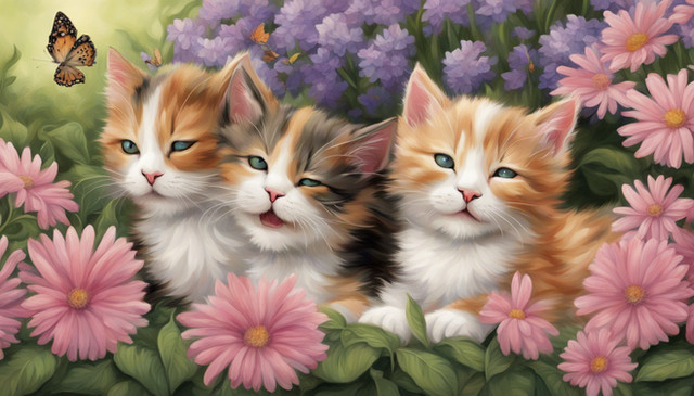 #ai #bathtime #butterflies #cute #fantasy #felines #fountain #kittens #pets #rosegarden