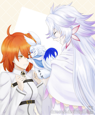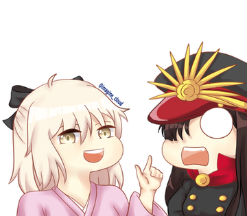 Don't be sad, be happy!Ft. Nobbu (small version of Demon Archer) and Nitocris (Assassin) from Fate/Grand Order