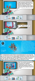 Ah, he is actually a scary Appmon, who can use hacking to create horrible and spiky attacks from the ground. But, since he is Offmon's fusion partner, in the DS game, I thought that he would tickle Offmon, instead.
