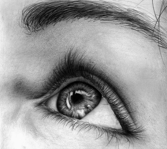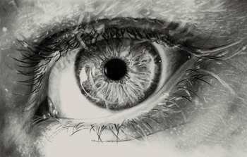 This is the 'highest impact' eye drawing I've ever seen. I think it draws its power from the intense blacks used, and the silky-smooth value gradients. Mesmerizing.