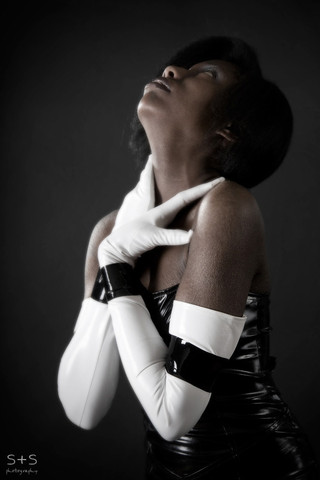 The black mysterious "latexarm" against the soft, sweet teddybear...