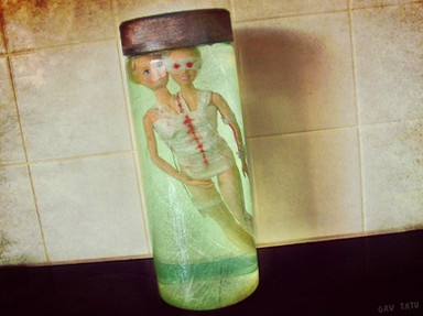 Almost looks like the creepy reflection of an alien in the leg jar! Scary! nice work!