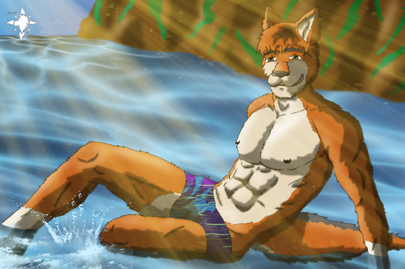 #anthro #forest #fur #furry #male #nature #water #waterfall