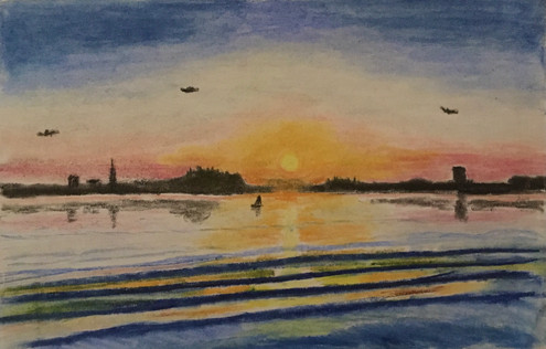 Palms, beach, summer, sunset, chill!Materials: paper, helium ink.