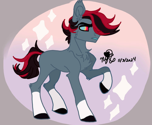 He also has a hobby - drawing, especially on a tablet, I was thinking of adding it to a cutie mark, like a guitar stylus that touches the tablet screen, but I abandoned this idea because of his dark ass, although maybe I'll add something similar to the cutie mark...