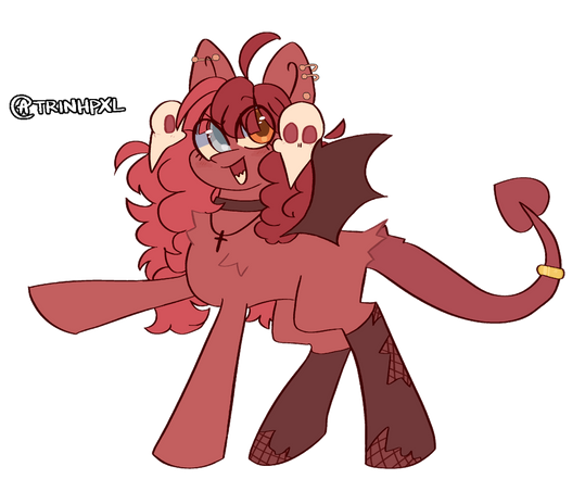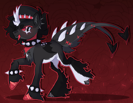 He is a flightless pegasus, with a cutie mark of an electric guitar, he is very good at playing it and also plays well on an ordinary one. I'm still thinking about making him these horns as a rim or as real horns (suddenly he had a dragon in his family??)