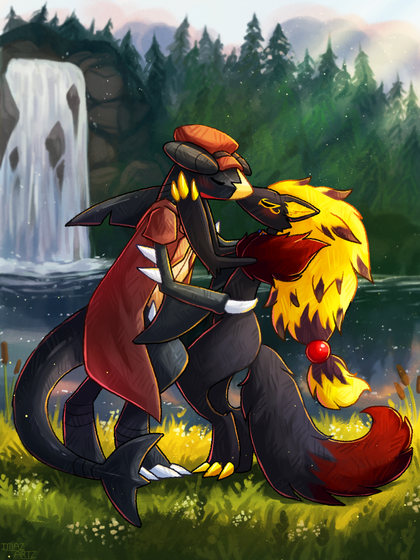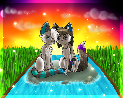 Β This is absolutely gorgeous! The colours, the atmosphere, the cuddly pose... You really did an amazing job! I'm sure the person you drew it for will love it! Keep up the amazing work! ^^