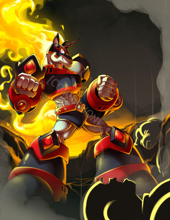 Commissioned byOh boy... must be nice to live in Reploid land right now. With the terrors Dreadmane and Soulrazer running around, you'd think it couldn't get worse. Yeah... no. Enter Pyromane, the third brother!