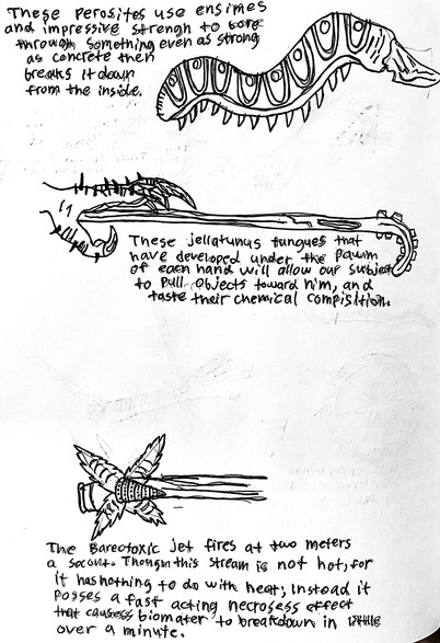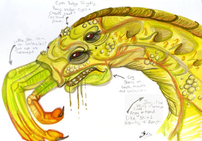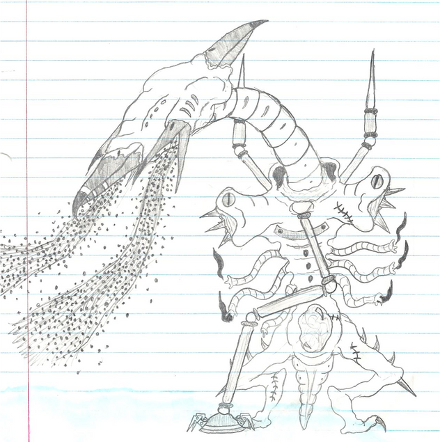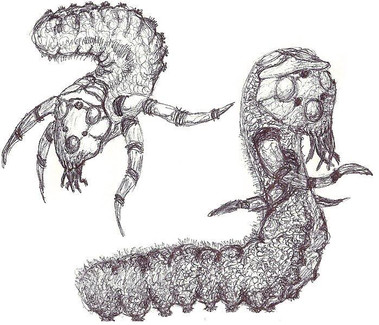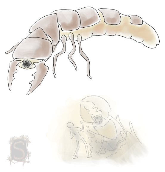 In the old Starcraft manual, it’s mentioned that the Zerg assimilated a lot of alien animal species into their Swarm to give them all the kinds of specialized organisms they need on their path to galaxy conquest. Unfortunately, there doesn’t seem to be any pictures of the original species before they were assimilated, so I chose to make one! This is the Slothien, or “caterpillar-cow”, the peaceful herbivorous species that the Overmind assimilated into the Zerg Swarm to create the first Hydralisks (!)I regret not drawing neck-shields on these things, but other than that I am quite content. I want the Slothien to come across as weird but harmless, and at least somewhat similar to its hydralisk descendant.