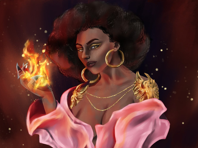 #digitalart #fanart #characterdesign #portrait #digitalpainting #characterillustration #fantasyart #curlyhair #deviantart #fireelemental #oc #tattooart #powerfulwomen #afrofantasy #blackgirlmagic #magicandmystery #imerart