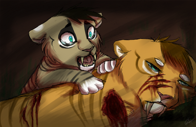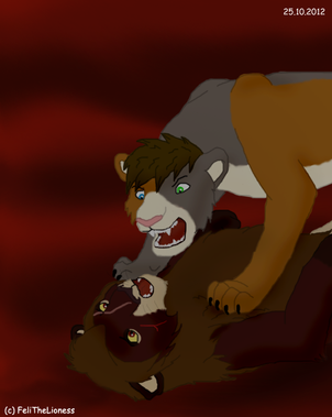 Buno stared...his beautiful wife was...dead...and his children...his unborn cubs that were so close...were gone? He didn't know. Maybe she'd already given birth? He was so close to having a family...now he was alone again. All over again.