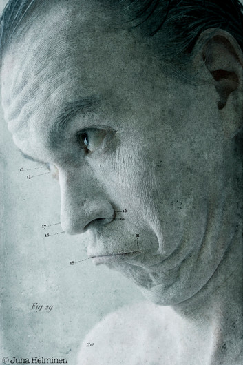 Neil Gaiman was visiting in Finland a year ago and I took this one of picture of him and it was sadly out of focus. I dry to do something with it at a time, but I was unable to do anything smart of it. Today I was looking a CD with old pictures on it and found the orginal portrite and made this. I like the old feeling in it.Thanks Neil!