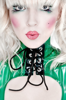 gotta love that makeup and the latex...i love the expression on her face too...she has gorgeous big eyes too which compliment her petite structure so perfectly...