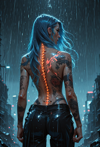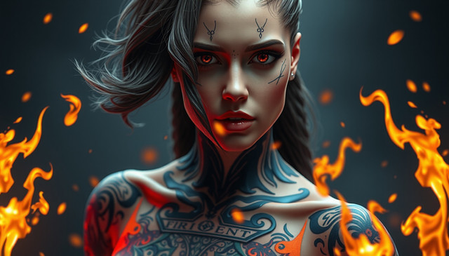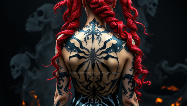 #fanart #tattoo #redhair #ai #dreamup #digitalart #characterdesign #horror #wallpaper #cyberpunk #portrait #beauty #videogamefanart #ai_art