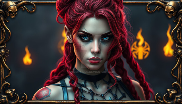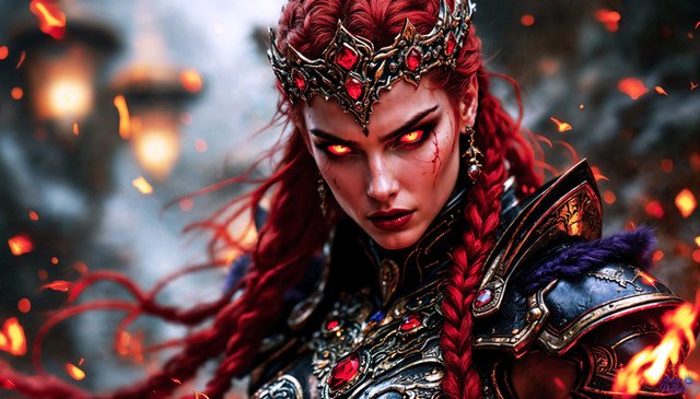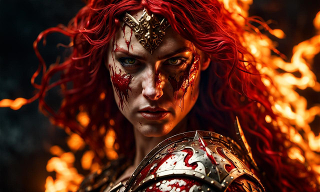 #digitalart #characterdesign #portrait #videogamefanart #warrior #magic #fantasyart #fantasycharacter #rpg #redhair #warriorwoman #ai #dreamup #fanart #cartoon #digitalpainting #wallpaper #beauty #pixelart #horror #medieval #ai_art