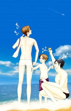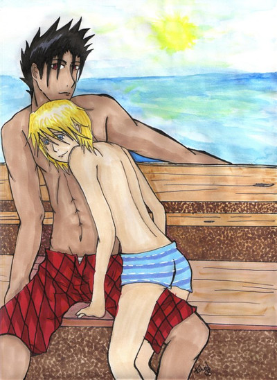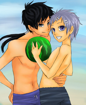 Because Shinigami will get sunburn if they dont have proper sun repellant on before they go surfing.Eep, the foreground is actually copic which I'm proud of. I got a little carried away with the backround which I hadn't intended them to be so close to the shore. Overall, they probably have like five minutes before the umbrella is washed out to sea :/