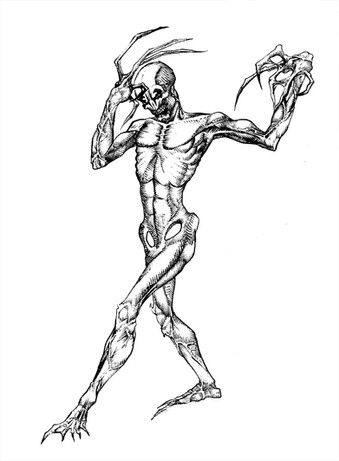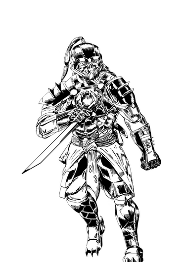 My 25th drawing of "D&December" which is a redesign on my 5th prompt "rogue" redrawing the character in the future. After the attack by the divine order my undead adventurers retreated for a number of years; but have now returned even more powerful in their quest for vengeance. Taking my fifth character the rogue ghoul Eurad and redrawing her as my predator ghoul. I almost thought I should not change Eurad's look from when I had first drawn him; but then I thought I should and draw him looking more prepared for a fight than some skulking figure. I changed up his attire a little bit giving him a large coif, gave him a couple extra scar here and there. Tied his original bone handle blade on his back and giving him a wrist blade like the Predator. When my undead adventurers returned they came leading a vast horde of undead. Eurad led packs of ghouls up from the city sewers and catacombs terrorizing the city behind the lines tying up troops, setting fires and attacking the helpless.Related content