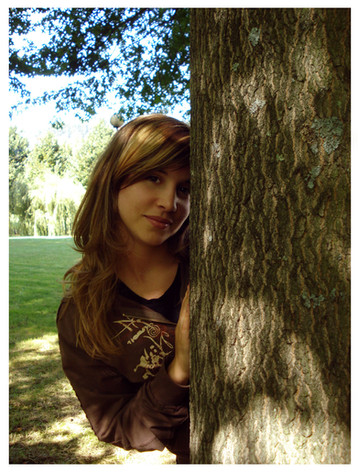 you look so tiny compared to that big tree. nice shot i like the way the light is shinning through the leaves.