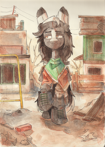 Err, uhm... Uhh... I like her mane, that's for sure. The surrounding seems appropriately barren and somber. Though that kind of begs the question why she looks so... peppy.