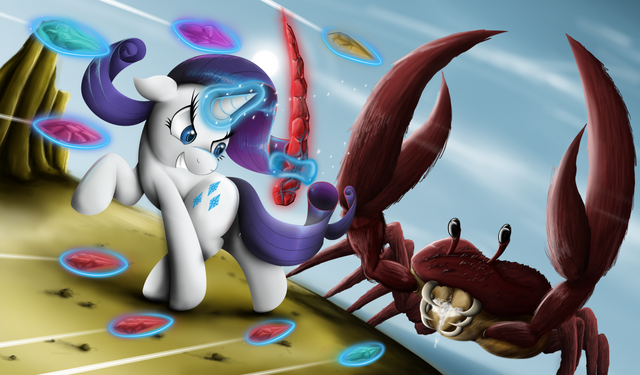 I should do a Rarity VS. giant crab picture sometime... It looks like she's holding an over-sized sewing needle!