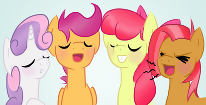 Aww Sweetie Belle ^_^ hehe that Applejack and Rarity is just going "Why are you photo bombing us, darling?"Ā XDĀ great scene!