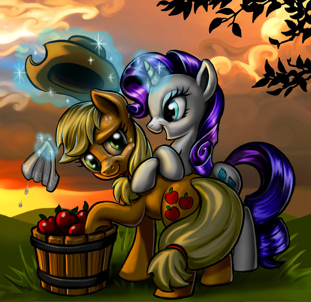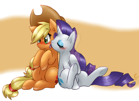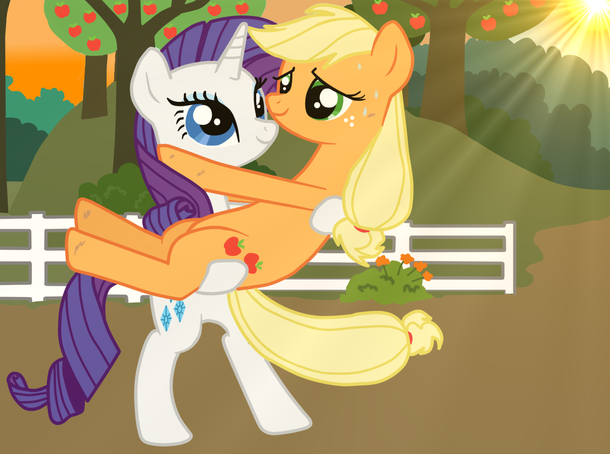 Aww Rarity looks so sweet sitting on AJ like that, kinda funny pose actually ^_^ hehe Beautiful scene <3 very nice work!!