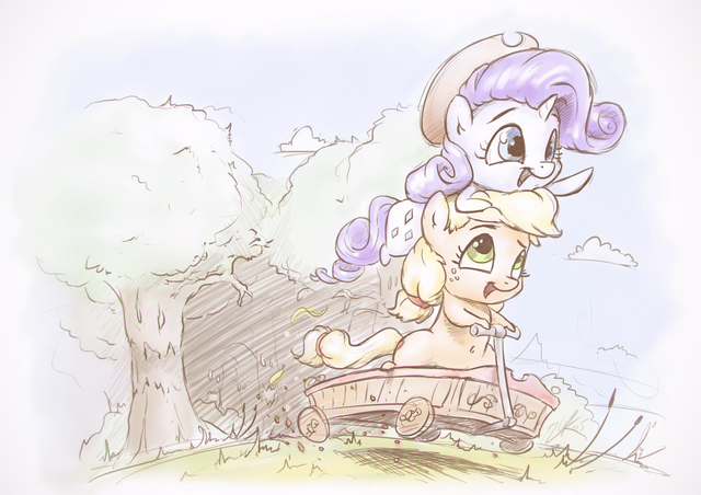 Aww Rarity looks so sweet sitting on AJ like that, kinda funny pose actually ^_^ heheΒ Β Beautiful scene <3Β very nice work!!Β