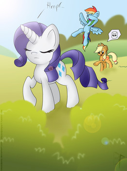 This is a fantastic scene!Β I love how well this odd couple gets along.Β Seeing them bicker about their opposite trends, but then always use their unique strengths to help each other out is about 80% of what I like about this show.Β I absolutely love this scene you came up with for them; it's a great encapsulation of "country mouse, city mouse" and plays up on Rarity's diva-like tendency to take advantage of her friends' kindness without realizing it.