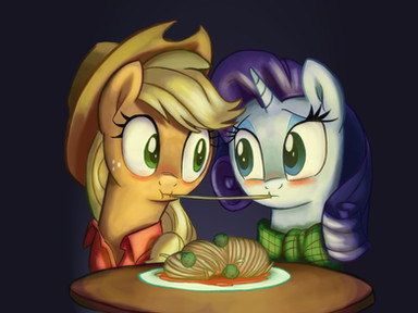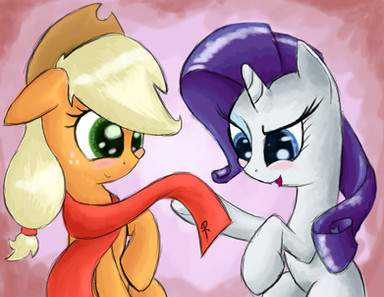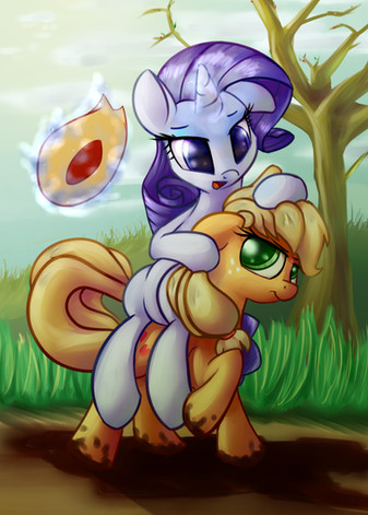 Hopefully Rarity will repay the favor to Applejack in some way. Though Rarity has had a history of not liking green, I feel that the colors fit Applejack nicely. Your shading on Rarity's mane is wonderful and Applejack's mane looks nice.